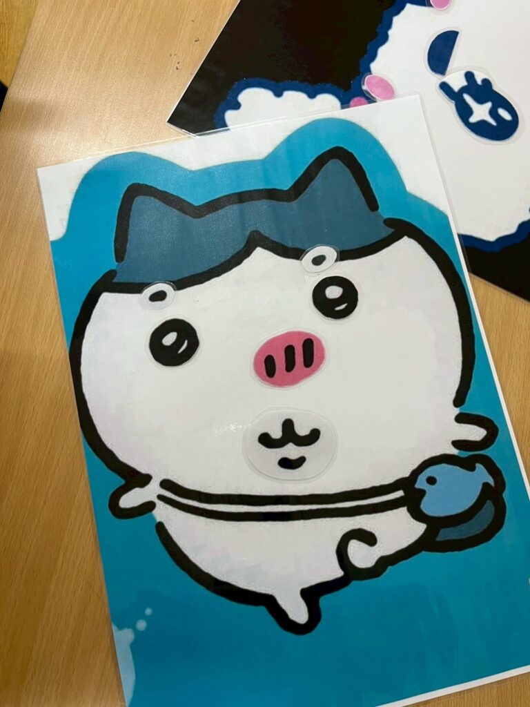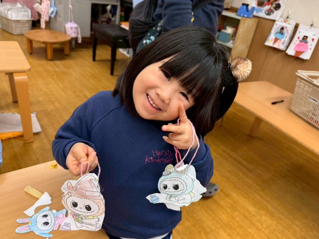 作ったぬりえが紐をつけるとキーホルダーに大変身⭐️