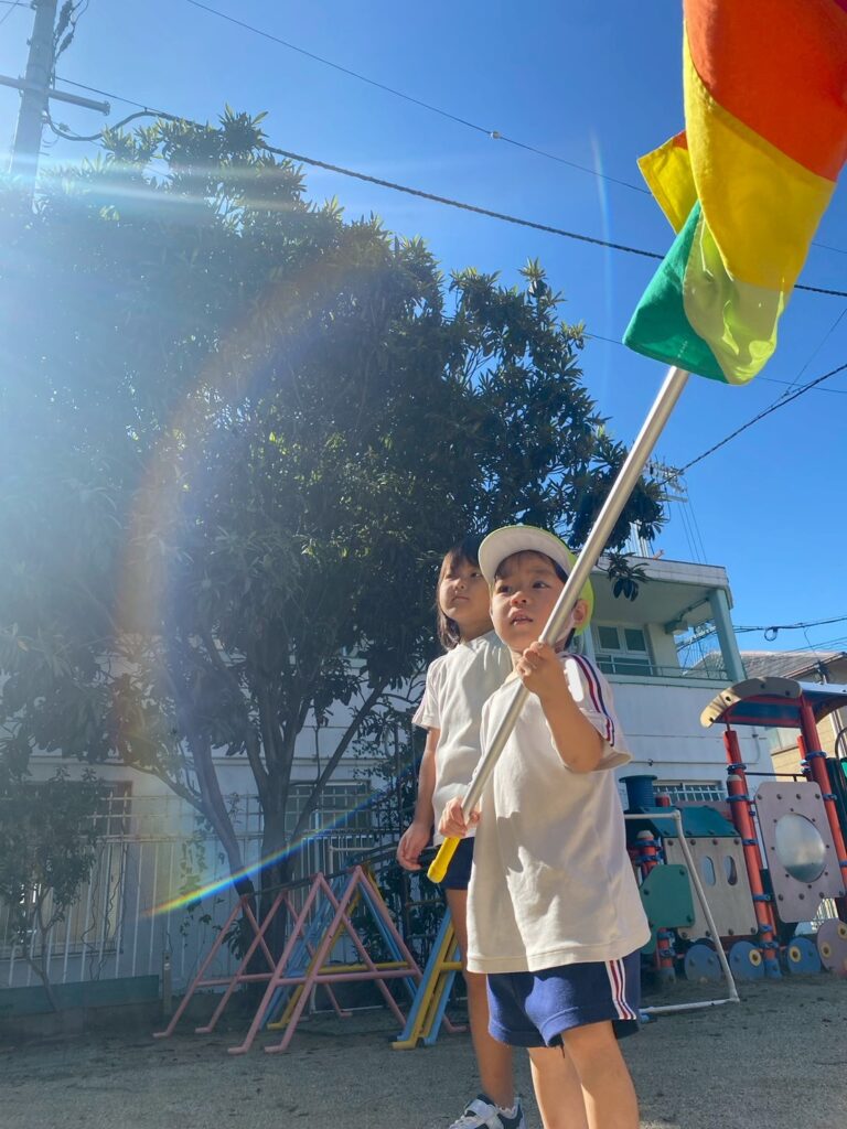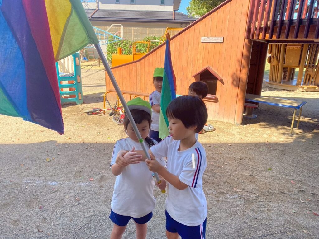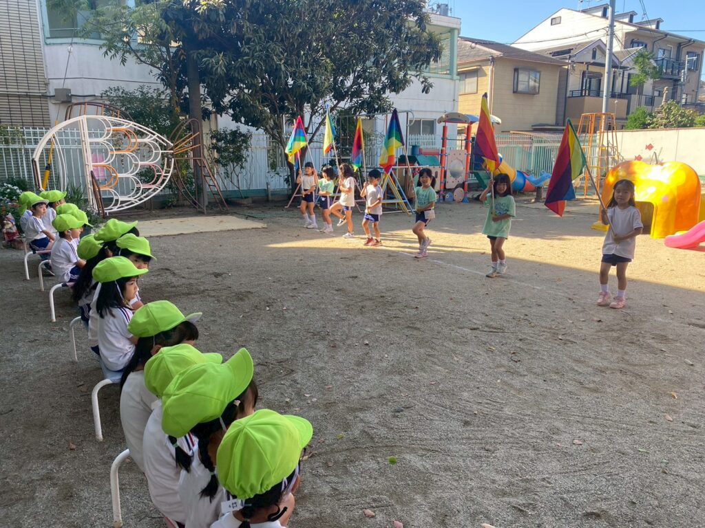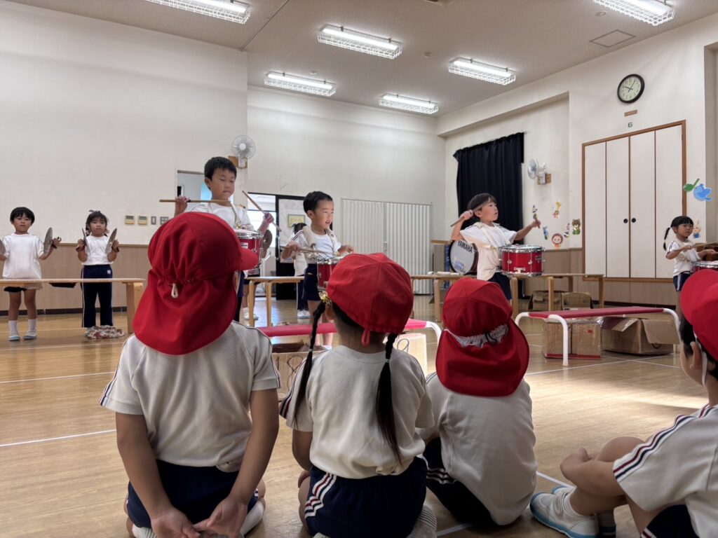 まずはお手本として緑組が運動会で披露した組体操と鼓笛隊を披露しました💚