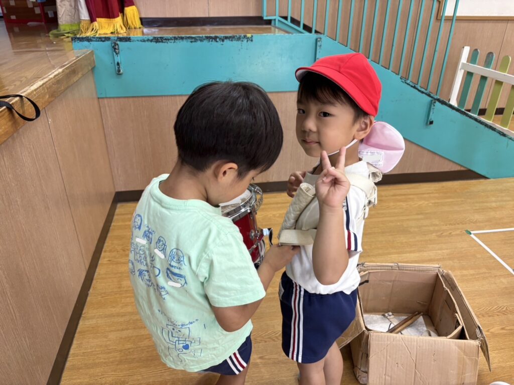 今日は黄組、緑組で鼓笛遊びをしましたよ‼️