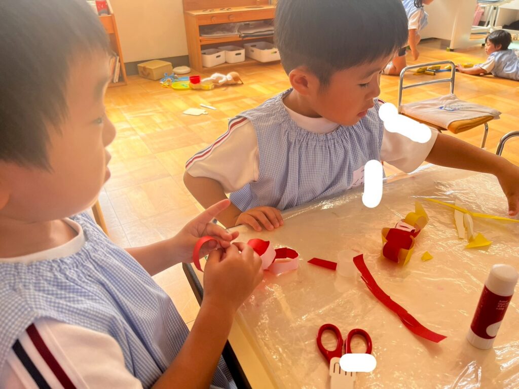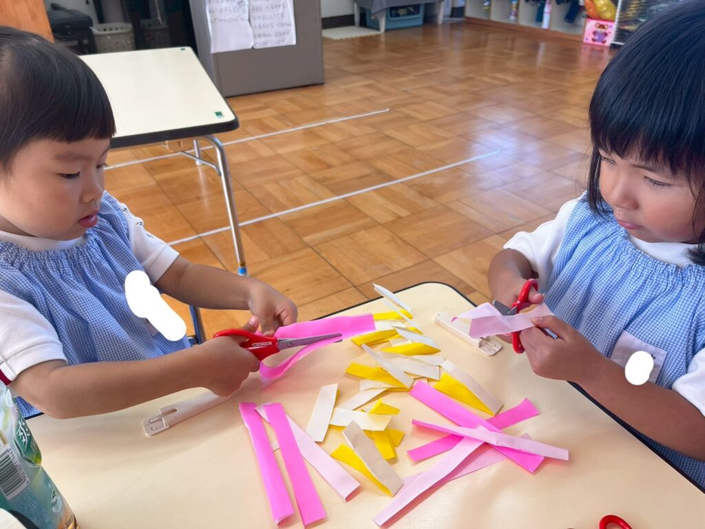 ハサミも上手にチョキチョキして〜のりでくっつけて〜
