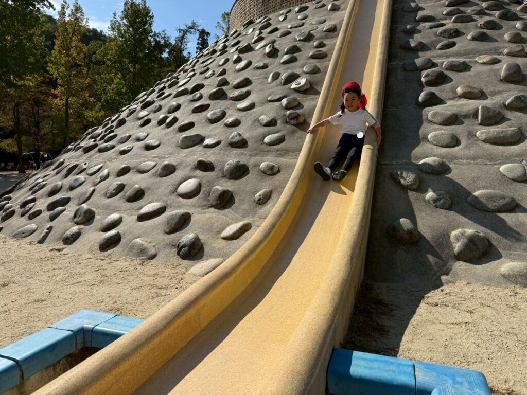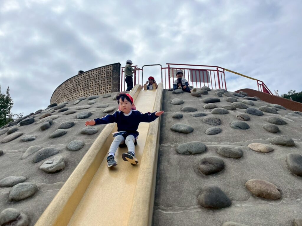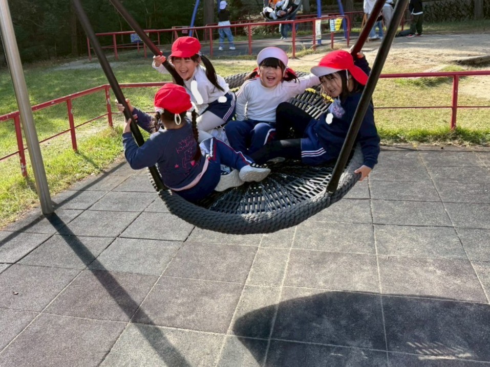 変わった形のブランコにみんなで乗って笑っている姿や、中にはすべり台の坂道でお昼寝中のお友達も(笑)