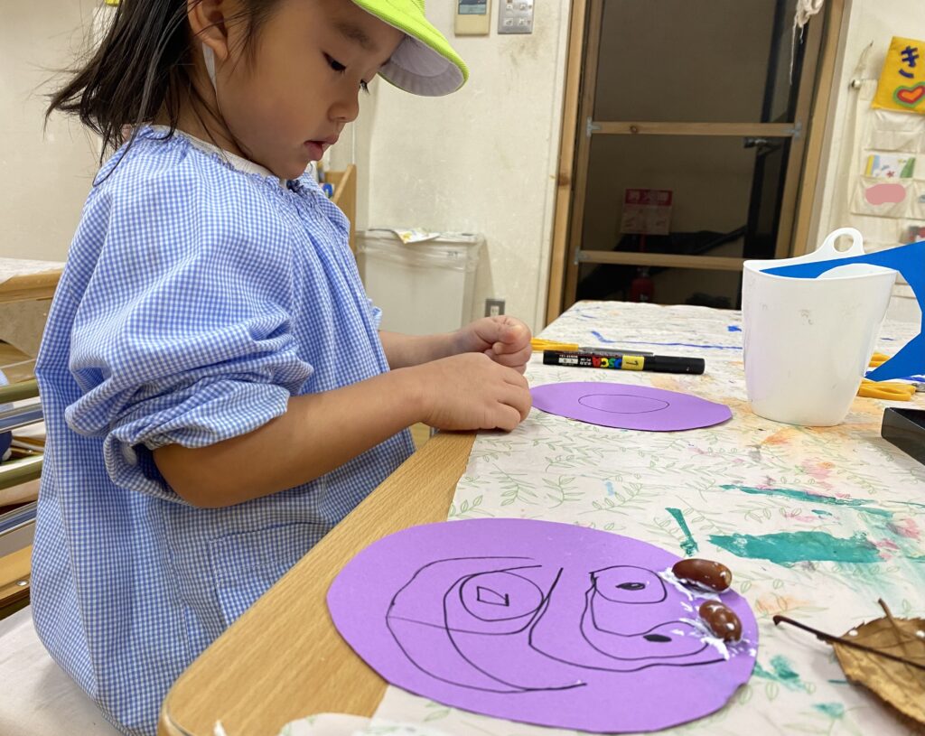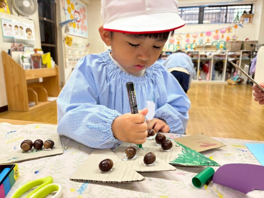 先日の遠足先でたくさん集まったどんぐりを使ってみましたよ♪