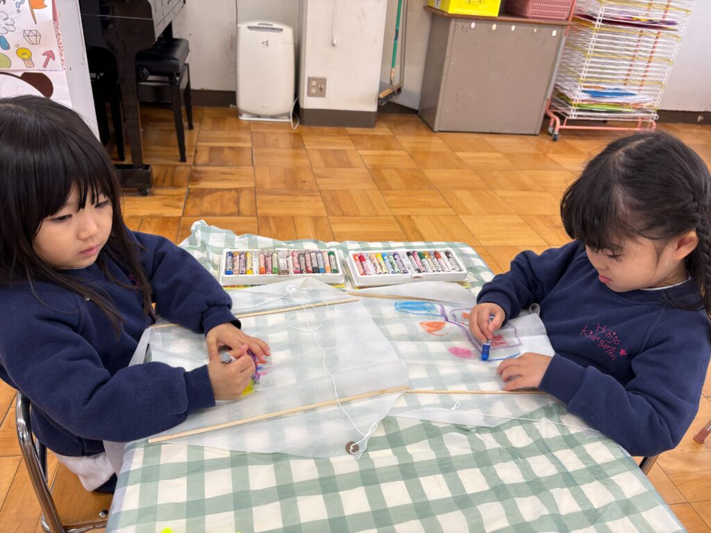 桜・黄・緑組はクレパスやペンを使ってお絵描き🎨✍