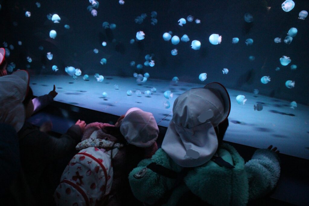 クラゲの種類が多く、赤ちゃんクラゲや白いクラゲ、赤くてモクモクとした形のクラゲなど子どもたちは夢中になっていました💕