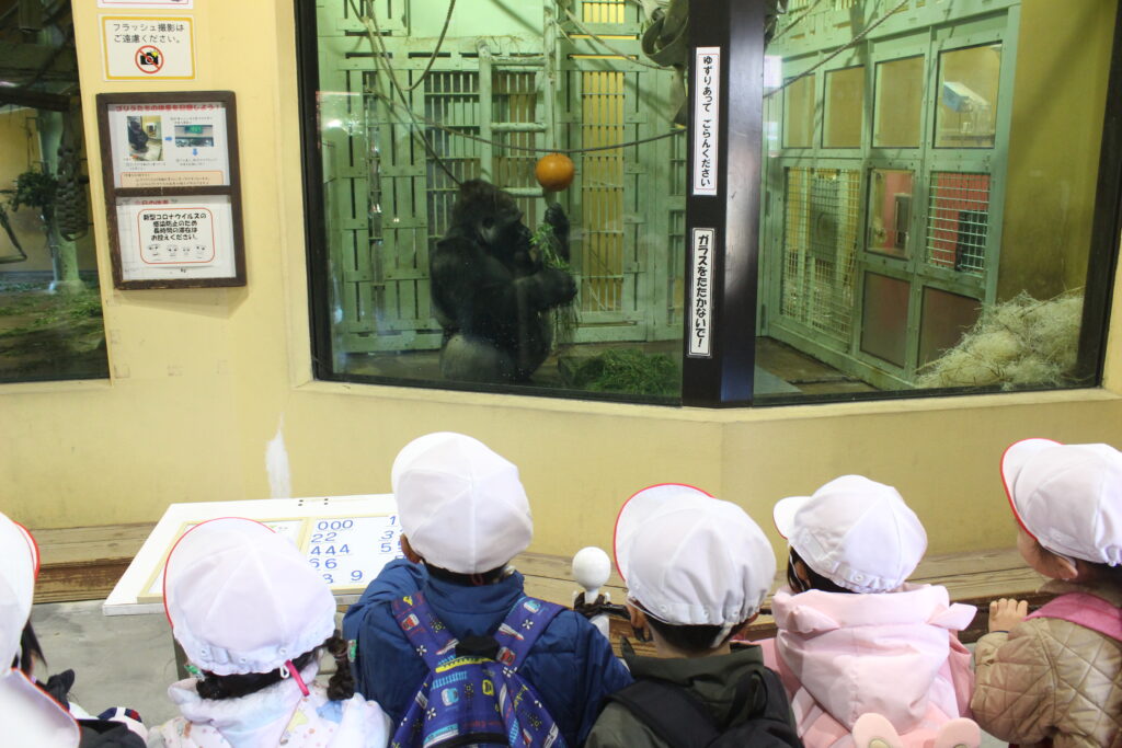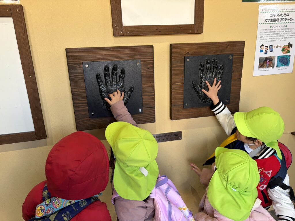 ゴリラの手形を見て『ゴリラの手こんなに大きいの?』とみんなの可愛い手と比べてみたり!