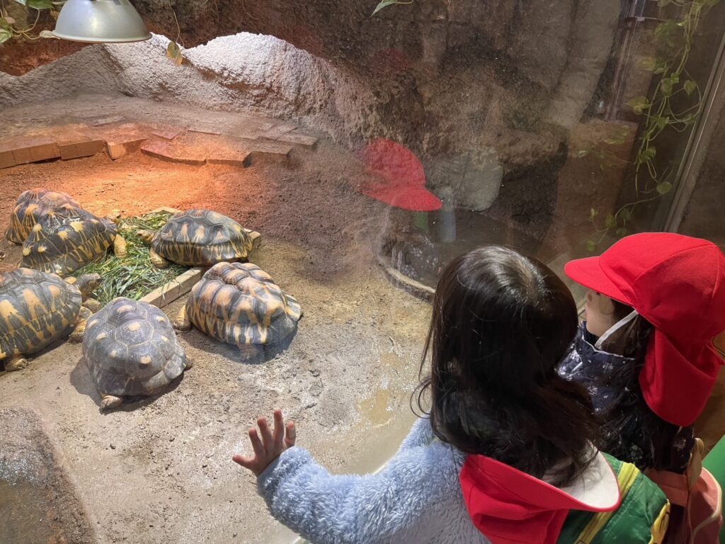 『カメさんいるの?』と覗き込んだり…